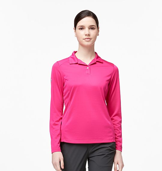 女彈性透氣排汗POLO長袖衣 適用 通勤、旅行、出國 顏色 09桃紅色、22蜜粉紅、110冰河藍、123經典藍 布種特性 吸濕排汗可迅速吸收皮膚上之汗水,使汗水迅速於織物上擴散蒸發,可經常保持衣著與身體之乾爽舒適,易洗快乾,似天然纖維之舒柔觸感,抗UV 設計理念 •POLO領開襟設計採用銅片LOGO縫釦 •領片.剪接採不壓線設計 •後領內側以同布種配色出芽 •女款剪接線條修飾腰身 產品指數 款式-寬鬆 常規 修身 緊身 彈力-無彈 微彈 彈力 高彈 厚度-薄款 適中 厚款 加厚 柔軟-柔軟 偏軟 適中 偏硬