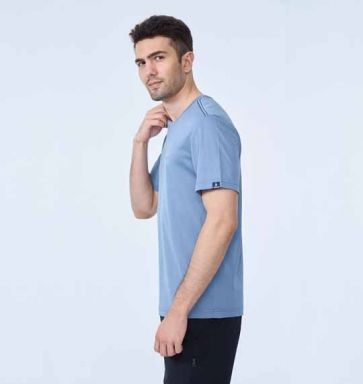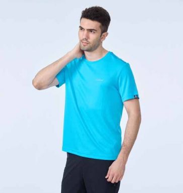 男彈性透氣排汗圓領上衣 適用 : 登山、徒步、露營、日常、運動、出國、旅行 布種特性 : 吸濕排汗可迅速吸收皮膚上之汗水,使汗水迅速於織物上擴散蒸發,可經常保持衣著與身體之乾爽舒適,易洗快乾,似天然纖維之舒柔觸感,抗UV 產品特性 : 圓領設計,肩與後領圍處鎖鏈配色車縫,左前下擺處夾車經典織標,左袖口加LOGO繡花