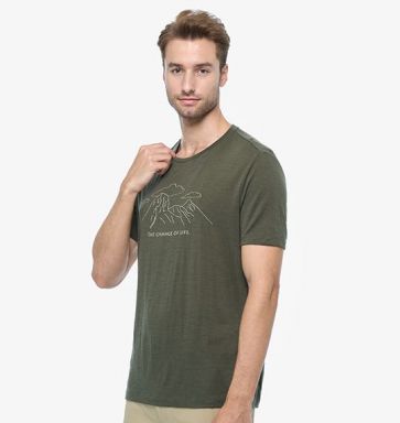 產品特性 :修身圓領短袖版型;插畫:台灣500元鈔票上的大霸尖山