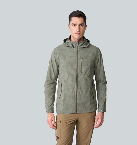 產品特性 可拆帽、帽前緣打褶無束繩,更加包覆輕巧、袖口用鬆緊帶加彈簧釦調節,依個人喜好調整鬆緊