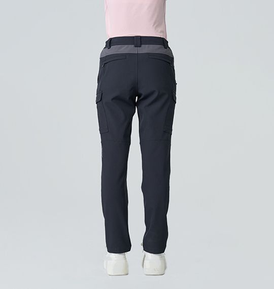 /右側袋鹿頭皮標裝飾/後上兩個袋排拉鍊口袋/膝圍處車摺增加活動量/左後膝下LOGO繡花