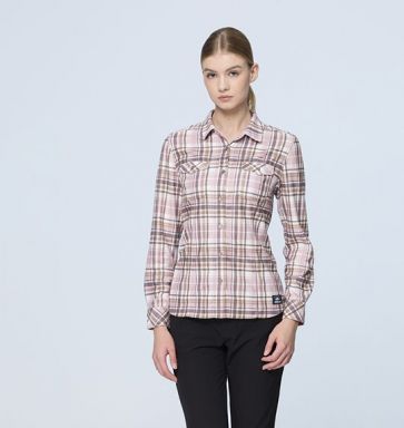 女彈性格紋內刷毛保暖襯衫